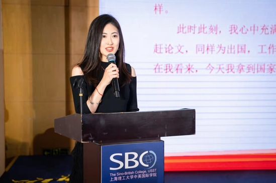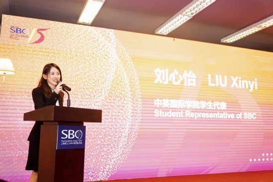 劉心怡在中英國(guó)際學(xué)院建院十五周年大會(huì)上發(fā)言