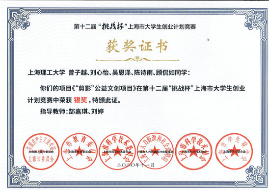 項(xiàng)目獲第十二屆“挑戰(zhàn)杯”上海市大學(xué)生創(chuàng)業(yè)計(jì)劃競(jìng)賽銀獎(jiǎng)