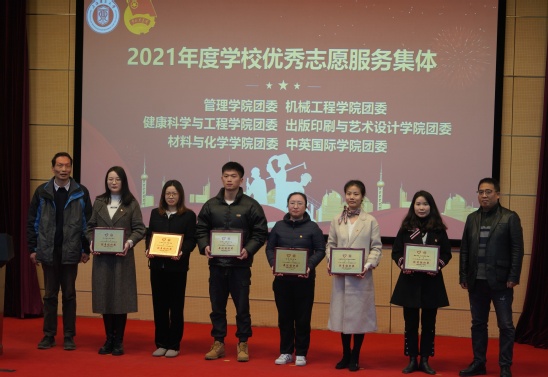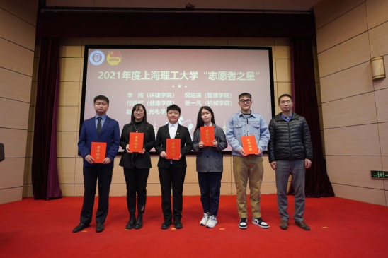 會上,校團委書記劉威從志愿服務工作概況、專項志愿服務活動組織、志愿服務品牌創(chuàng)建等方面匯報了我校2021年志愿服務工作總體情況。研工部部長彭宗祥宣讀了2021年度學校個人和集體分別榮獲上海市優(yōu)秀志愿者、第四屆進博會志愿服務先進集體的獲獎喜報。學工部副部長孟志雷、保衛(wèi)部副部長蔣純國、后勤處副處長繆渝斌分別為2021年度學校優(yōu)秀志愿服務集體和“志愿者之星”頒獎。組織部副部長謝錫浩、宣傳部副部長孫立共同為志愿服務隊授旗。學校青年志愿者協(xié)會張一凡同學作為學生代表發(fā)言,她號召學校全體青年攜手并肩,為建設和諧美麗校園和爭創(chuàng)全國文明校園貢獻自己的青春力量。