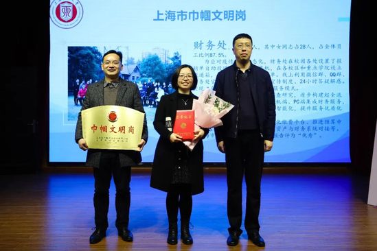 吳堅勇為上海市“巾幗文明崗”財務(wù)處頒獎