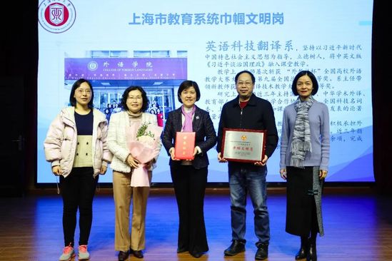蔡永蓮為上海市教育系統(tǒng)“巾幗文明崗”外語學(xué)院英語系(科技翻譯)頒獎