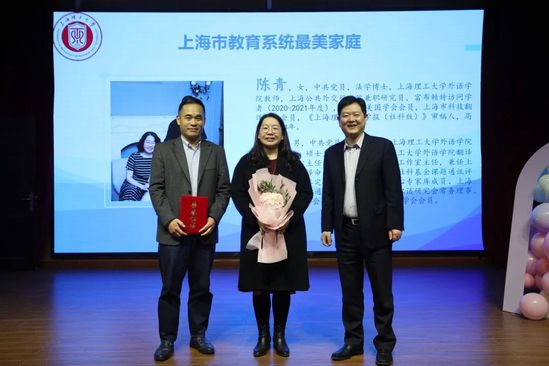 孫躍東為上海市教育系統(tǒng)“最美家庭”陳青、王勇夫婦頒獎