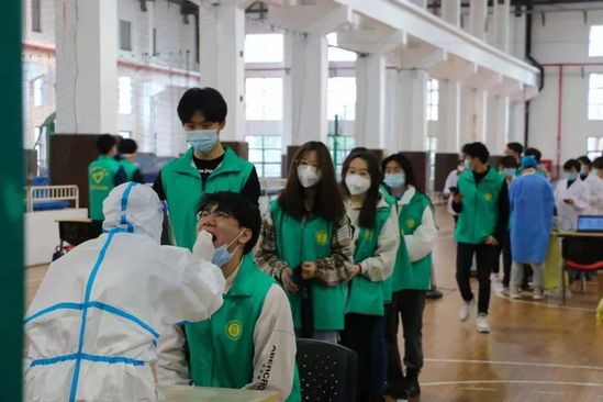 醫(yī)護(hù)人員第一時(shí)間奔赴前線,為大家做核酸檢測(cè);線下停課,老師們?cè)诰€上依然細(xì)心解答,在沒有一位學(xué)生的教室里認(rèn)真板書;做核酸的隊(duì)伍排得很長(zhǎng)很長(zhǎng),同學(xué)們主動(dòng)收集隊(duì)尾信息,為其他同學(xué)提供方便;志愿者們有召必到,熱情幫忙。
