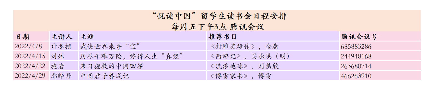 附件二:“悅讀中國”留學(xué)生讀書會日程安排