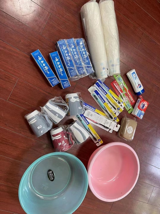 在集中健康觀察期間,丁建華和同學(xué)們的生活用品準備不足,缺少洗漱用的盆,而校內(nèi)集中采購的物資因物流原因暫時還未到校。同學(xué)們通過微信群聯(lián)系到了相關(guān)負責(zé)老師,很快,多位老師表示可以捐出自己空余的盆和桶,經(jīng)過消毒,當(dāng)天就送到了丁建華和同學(xué)的手中,“用老師們的愛心盆擦了臉和頭發(fā),我瞬間又能戰(zhàn)斗了,跳舞更帶風(fēng)哈哈。”