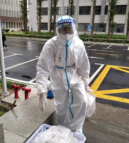 在本輪疫情暴發(fā)初期,軍工路校區(qū)南區(qū)不到10位教師要為整個校區(qū)7000多名學(xué)生送三餐,為了讓同學(xué)們在最短的時(shí)間內(nèi)吃上飯,他和同事們化身“送餐員”,在只有小推車的情況下,小步跑,大步走,裝卸一氣呵成,讓送餐流程控制在兩個半小時(shí)內(nèi)完成,每次回辦公室都累癱在椅子上,第二天又打起精神繼續(xù)。