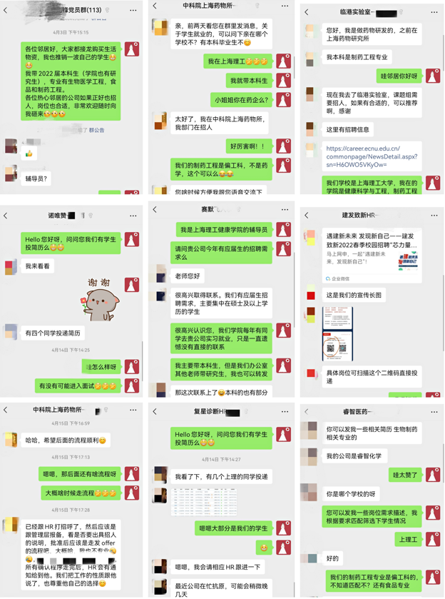 朱旭老師在社區(qū)群里推介上理畢業(yè)生