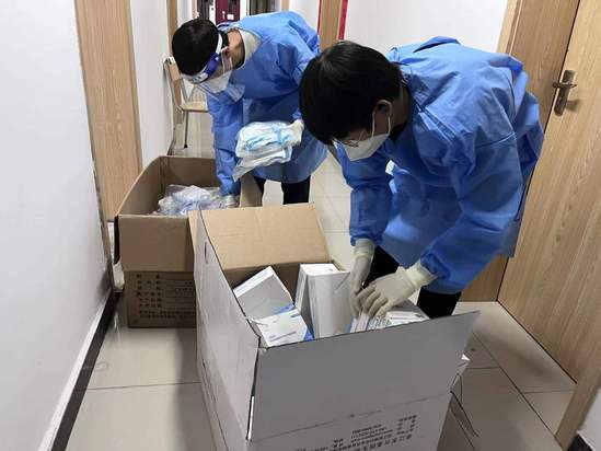 協(xié)助“大白”完成核酸檢測(cè)工作、搬運(yùn)餐食、對(duì)物資進(jìn)行消殺和分發(fā)、協(xié)助輔導(dǎo)員統(tǒng)計(jì)每日抗原情況……這些都是復(fù)興路校區(qū)第四宿舍黨員志愿者陸詩(shī)雯最近的日常。其中,送餐和送物資是個(gè)“體力活”,全靠陸詩(shī)雯和其他志愿者徒手搬運(yùn),剛開(kāi)始她甚至扭傷過(guò)腰,慢慢就摸索出了“竅門(mén)”,將水果和飲料等進(jìn)行二次分裝,上下樓多跑幾趟。