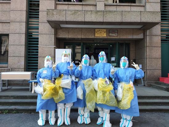 衣服濕透、捂干、再濕透,蒸氣籠罩面罩、視線模糊,長(zhǎng)時(shí)間戴N95口罩呼吸不暢,重復(fù)動(dòng)作胳膊酸軟無(wú)力……自4月26日校內(nèi)核酸采樣組成立以來(lái),22名教師、30位學(xué)生志愿者每天都在適應(yīng)這樣的狀態(tài)?!按┥戏雷o(hù)服,便是一個(gè)戰(zhàn)士,肩負(fù)使命出征。從專業(yè)教師化身‘大白’,手中的教棒化作棉簽,更加能體會(huì)到醫(yī)護(hù)人員的辛苦與不易,核酸采樣組是學(xué)校疫情防控第一防線的尖兵連!” 核酸采樣組女隊(duì)負(fù)責(zé)人、體育部主任朱曉菱老師頗為自豪地說(shuō)道。