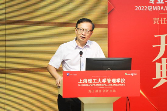 劉平代表全校教職員工對(duì)新同學(xué)們的到來(lái)表示熱烈歡迎。專業(yè)學(xué)位教育中心從MBA、MPA、MEM(3M)到目前的6M,顯示出管理學(xué)院事業(yè)蒸蒸日上。他系統(tǒng)回顧了管理學(xué)院商科發(fā)展的歷史以及管理學(xué)科、系統(tǒng)學(xué)科為上海及國(guó)家在科學(xué)研究、人才培養(yǎng)、服務(wù)社會(huì)等方面作出的卓越貢獻(xiàn)。為了推動(dòng)管理學(xué)院再上新臺(tái)階、再創(chuàng)新業(yè)績(jī),學(xué)校計(jì)劃在學(xué)科交叉新領(lǐng)域進(jìn)一步支持管理學(xué)院的學(xué)科建設(shè)與人才培養(yǎng)創(chuàng)新。劉平表示,希望同學(xué)們求學(xué)期間,把握好人生的方向,只爭(zhēng)朝夕、不負(fù)韶華,勇于突破自我,努力成為黨和國(guó)家事業(yè)發(fā)展需要的優(yōu)秀人才。