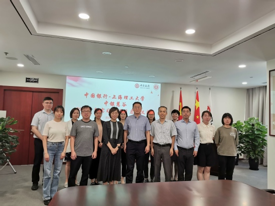 9月6日,管理學(xué)院副院長張崢、金融系主任張青龍、青年教師蘇孝珊帶領(lǐng)學(xué)院學(xué)生前往中國銀行楊浦支行,參加上海理工大學(xué)與中國銀行合作共建的產(chǎn)教融合基地“中銀慧谷”2022首期實習(xí)生項目啟動儀式,中國銀行楊浦支行副行長陸瑩、行長助理賈浩浩、行政事業(yè)機構(gòu)部副主任劉勤、個人金融部主管張維琳、公司金融部主管王菁如、交易銀行部主管楊玉雯和運營中心主管歐陽婷婷等出席儀式。啟動儀式由劉勤主持。