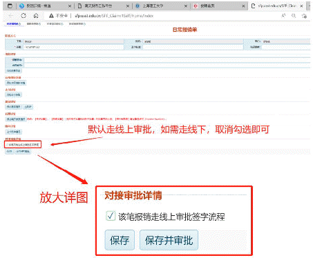 2.線上報(bào)銷審批流程,目前將采用線上審批和線下審批并行的方式運(yùn)行,系統(tǒng)將默認(rèn)線上審批,用戶也可在報(bào)銷單填報(bào)過(guò)程中選擇線下審批。為加快審批流程,提高業(yè)務(wù)辦理效率,提倡采用線上審批,我們也將在該功能運(yùn)行和完善一段時(shí)間后適時(shí)全面采用線上審批的方式。