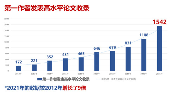 2012年-2021年第一作者發(fā)表高水平論文數(shù)