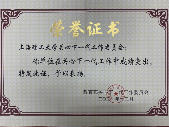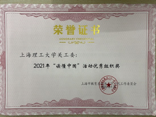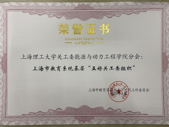 近日,上海市教育系統(tǒng)關(guān)工委召開貫徹落實(shí)中辦、國辦“意見”專題工作會議,會上表彰了一批先進(jìn)集體、課題調(diào)研成果獎、基層“五好關(guān)工委組織”等。其中,我校獲“全國教育系統(tǒng)關(guān)心下一代工作先進(jìn)集體”稱號、2021年“讀懂中國”活動優(yōu)秀組織獎(市教育關(guān)工委系統(tǒng))、3項(xiàng)課題成果獲獎,能動學(xué)院關(guān)工委獲上海市教育系統(tǒng)基層“五好關(guān)工委組織”稱號。