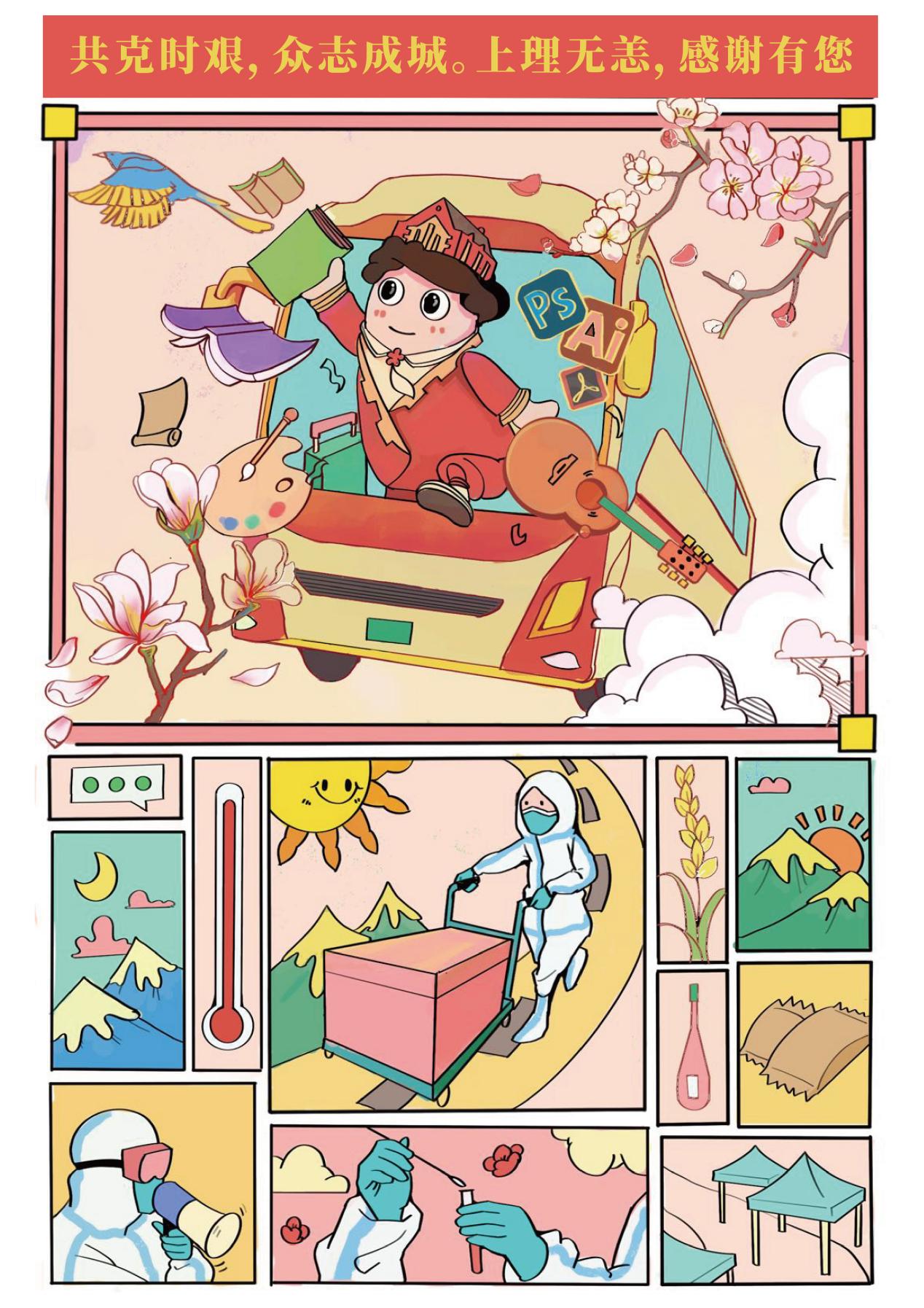 作品名稱(chēng):上理抗疫記 作品形式:平面海報(bào)