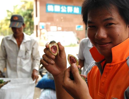 此時此刻,可能全世界7億左右的人,也就是10%的總?cè)丝冢谝圆煌问绞秤脵壚啤2粌H東南亞、南亞,在中國臺灣、海南、福建、湖南等地也流行嚼檳榔。