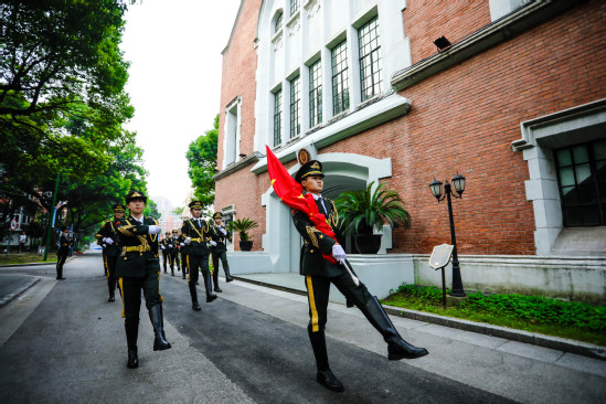 為慶祝中華人民共和國成立73周年,喜迎黨的二十大勝利召開,10月1日清晨,學(xué)校在軍工路校區(qū)北區(qū)國旗廣場舉行升旗儀式。校長丁曉東,黨委副書記、紀委書記劉道平,黨委副書記孫躍東,黨委副書記、副校長盛春,部分黨政部門和學(xué)院黨組織負責(zé)同志,師生代表約300人參加儀式。儀式由盛春主持。