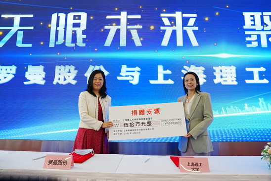 現(xiàn)場,雙方簽署《合作發(fā)展框架協(xié)議》。羅曼股份向?qū)W校教育發(fā)展基金會捐贈50萬元,支持學(xué)校育人事業(yè)。上海理工大學(xué)-上海羅曼照明股份有限公司學(xué)生實習(xí)基地成立并揭牌。