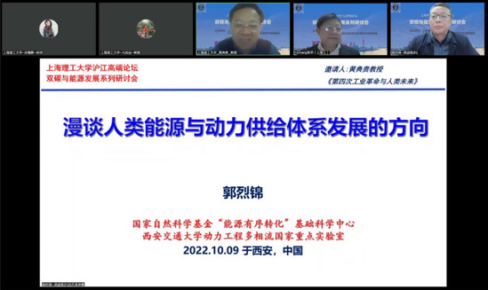 10月9日舉行的研討會(huì)的主題是“能源科技與動(dòng)力供給體系”,中國(guó)中科院院士、世界科學(xué)院院士、工程熱物理與能源利用學(xué)家、我國(guó)能源動(dòng)力多相流及氫能學(xué)科主要帶頭人郭烈錦教授出席,并做題為“漫談人類能源與動(dòng)力供給體系發(fā)展的方向”的報(bào)告。他從人體能源動(dòng)力供給體系與多相流科學(xué)技術(shù)的聯(lián)系談起,通過討論能量與能源的內(nèi)涵及其轉(zhuǎn)化利用的本質(zhì),回顧了人類用能與傳統(tǒng)能源動(dòng)力供給體系的演變,闡述了我國(guó)能源強(qiáng)國(guó)戰(zhàn)略的要義與碳中和的內(nèi)核。最后從“能源有序轉(zhuǎn)化”的科學(xué)理論出發(fā),介紹了變革性的潔凈低碳高效煤炭轉(zhuǎn)化原理與創(chuàng)新技術(shù)的進(jìn)展。