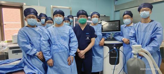 首例經(jīng)支氣管早期周圍型肺癌冷凍消融術(shù)成功后,醫(yī)生與研發(fā)人員合影