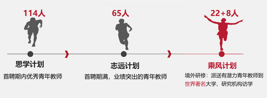 學(xué)校厚植人才成長(zhǎng)成才沃土,實(shí)施校內(nèi)青年教師培養(yǎng)的“思學(xué)計(jì)劃”“志遠(yuǎn)計(jì)劃”“乘風(fēng)計(jì)劃”,構(gòu)建覆蓋教師發(fā)展不同階段的“階梯式”培養(yǎng)體系,助力青年教師成長(zhǎng)成才,努力讓更多“千里馬”在建設(shè)特色顯著的一流理工科大學(xué)的征程中競(jìng)相奔騰。管理學(xué)院趙靖老師博士畢業(yè)進(jìn)入我校工作,先后受到“思學(xué)計(jì)劃”“志遠(yuǎn)計(jì)劃”“乘風(fēng)計(jì)劃”的持續(xù)資助,短短幾年內(nèi)已成長(zhǎng)為教授、博導(dǎo),并獲批“國(guó)家優(yōu)青”。校內(nèi)培養(yǎng)“三大計(jì)劃”實(shí)施至今,學(xué)校共資助青年教師200余人,青年科技創(chuàng)新人才培養(yǎng)成效逐年顯現(xiàn)。十年來(lái),青年教師獲批國(guó)家級(jí)人才計(jì)劃13人次,獲批省部級(jí)人才計(jì)劃超過(guò)200人次。