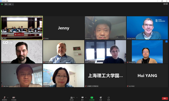 10月18日下午,中德國際學(xué)院聯(lián)合管理委員會第九次會議以線上線下相結(jié)合的方式召開,副校長、中德國際學(xué)院院長蔡永蓮,副校長張華,本科生院、國際交流處、財務(wù)處、中德國際學(xué)院、機械學(xué)院及光電學(xué)院負責(zé)人和項目負責(zé)人參加會議。德國漢堡應(yīng)用技術(shù)大學(xué)德方項目負責(zé)人胡特教授(Michael R?ther)、富特旺根應(yīng)用技術(shù)大學(xué)德方項目負責(zé)人郝赫教授(Markus Hoch)、科堡應(yīng)用技術(shù)與藝術(shù)大學(xué)德方項目負責(zé)人維克教授(Michael Wick)和東巴伐利亞雷根斯堡應(yīng)用科技大學(xué)德方項目負責(zé)人席萊內(nèi)爾(R. Schreiner)教授在德國通過視頻方式參會。會議由張華主持。
