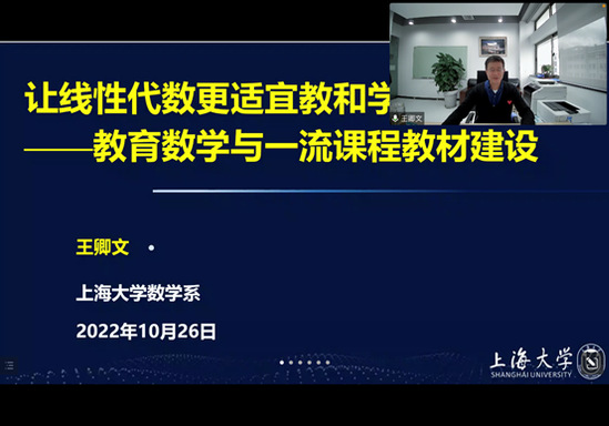 王卿文作“讓線性代數(shù)更適宜教和學(xué)——教育數(shù)學(xué)與線性代數(shù)教材建設(shè)”主題報(bào)告,以線性代數(shù)為例,介紹以教育數(shù)學(xué)為指導(dǎo),建設(shè)國家一流課程教材建設(shè)的經(jīng)驗(yàn)和體會,充分體現(xiàn)教材建設(shè)的創(chuàng)新性、高階性和挑戰(zhàn)度。報(bào)告引起了在場老師們的共鳴和熱烈討論。