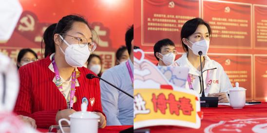 校團(tuán)委副書記楊陽匯報了第五屆進(jìn)博會志愿者服務(wù)保障情況;隨后來自管理學(xué)院2021級工商管理碩士研究生朱曼宇和版藝學(xué)院2019級本科生吳茜玥代表志愿者圍繞習(xí)近平總書記在第五屆進(jìn)博會開幕式上的致辭,分享進(jìn)博初心和青春宣言。