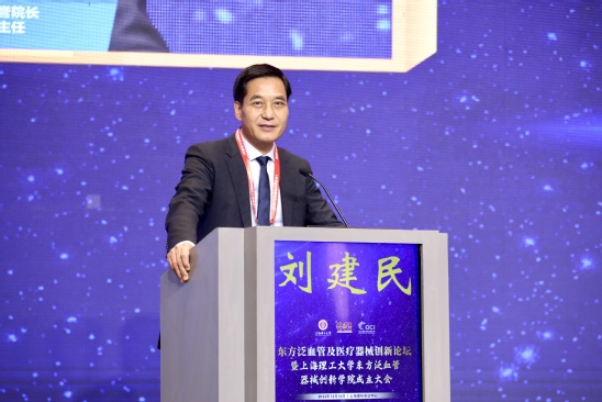 上海理工大學(xué)東方泛血管器械創(chuàng)新學(xué)院成立儀式上,海軍軍醫(yī)大學(xué)第一附屬醫(yī)院腦血管病中心主任劉建民受聘為學(xué)院榮譽(yù)院長(zhǎng),中國(guó)科學(xué)院院士、復(fù)旦大學(xué)附屬中山醫(yī)院心內(nèi)科主任葛均波受聘為學(xué)院院務(wù)委員會(huì)主任。