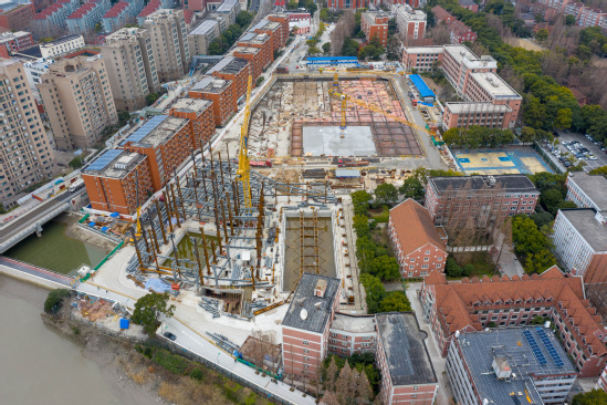 新教學(xué)樓建設(shè)最新進(jìn)展(無(wú)人機(jī)攝于2月22日)
