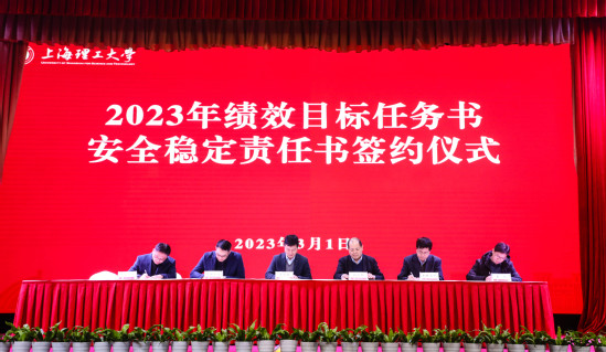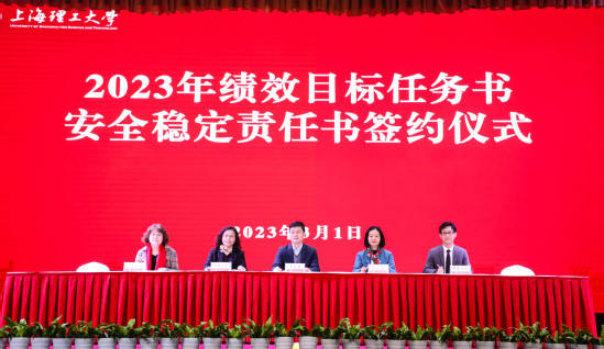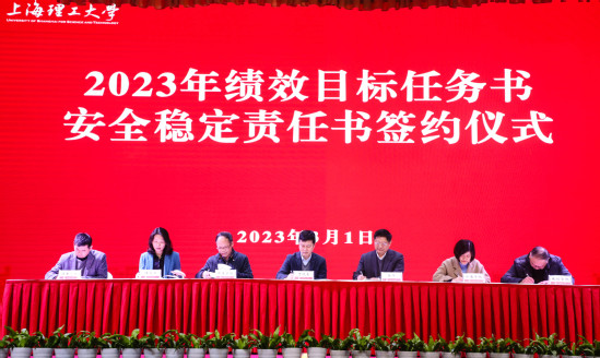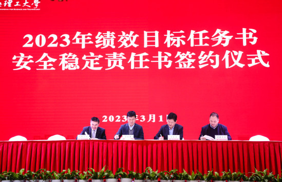 首先,校領(lǐng)導(dǎo)為2022年度獲得專項獎勵、年度考核A級的學(xué)院和部門以及特別表彰部門頒獎。隨后,校長丁曉東代表學(xué)校,與各二級管理部門負(fù)責(zé)人及其聯(lián)系工作校領(lǐng)導(dǎo)逐一簽訂了2023年度績效目標(biāo)任務(wù)書和安全防范工作責(zé)任書,黨委副書記、副校長盛春就績效目標(biāo)任務(wù)書的制定情況作了說明。