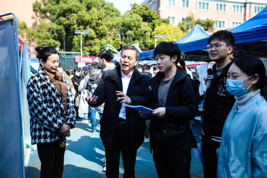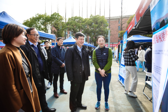學校領導高度重視畢業(yè)生就業(yè)工作,始終將其擺在學校工作的重要位置,在學校黨委常委會、校長辦公會、春季學期干部教師大會等重要場合要求全校上下關注和參與就業(yè)工作。校長丁曉東,校黨委副書記、副校長盛春親自帶隊走訪企業(yè)并多次到招聘會現場調研,與用人單位、應聘學生深入交流,了解企業(yè)用人需求、學校人才培養(yǎng)質量、學生求職心態(tài)等情況。各學院相關負責人、畢業(yè)班輔導員也主動到現場對接校企合作、開拓就業(yè)市場,千方百計促進畢業(yè)生就業(yè)工作。