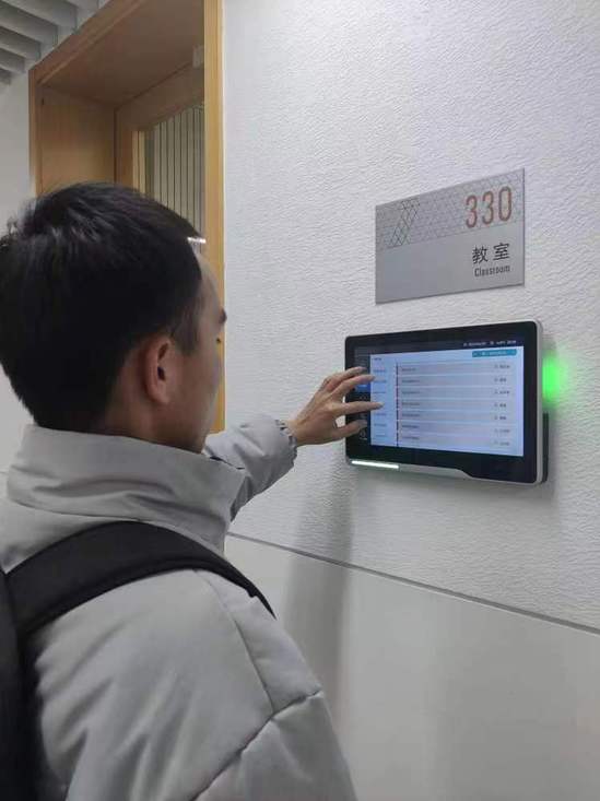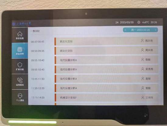 智慧教室門前的電子課表對(duì)課程一覽無遺。