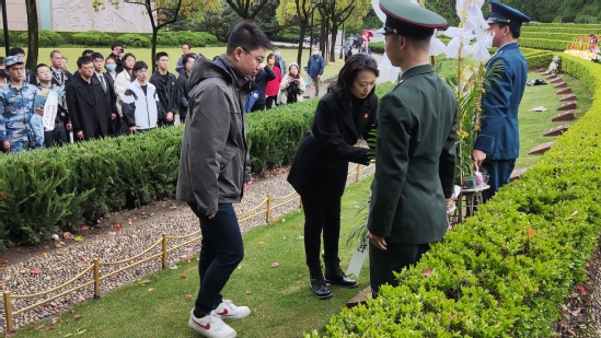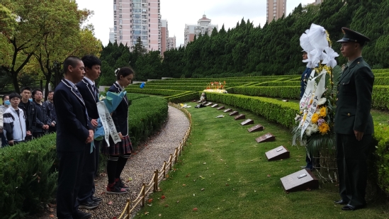 師生莊重三鞠躬表達(dá)對革命先烈的崇高敬意和沉痛哀思。在莊嚴(yán)肅穆的氣氛中,軍旅團(tuán)代表身著禮賓服,邁著鏗鏘有力的步伐將花籃送到劉湛恩烈士墓前。劉湛恩烈士親屬、師生代表依次敬獻(xiàn)花籃,深情整理挽聯(lián),悼念劉湛恩烈士對中國近代高等教育、救亡圖存和學(xué)校發(fā)展作出的突出貢獻(xiàn)。“立志繼承劉校長遺志……牢記‘信義勤愛,思學(xué)志遠(yuǎn)’,爭做新時(shí)代優(yōu)秀上理人!”全體成員現(xiàn)場宣誓,重溫了革命烈士為國家和民族的復(fù)興不懈奮斗的歷程,更堅(jiān)定了熱愛祖國、建設(shè)祖國的決心和信心。