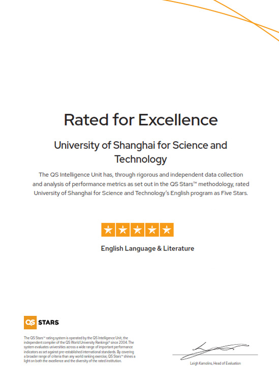 英語專業(yè)獲評國內(nèi)首個QS Stars五星認(rèn)證本科專業(yè)