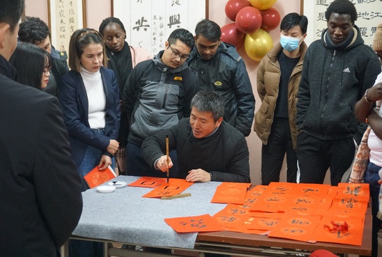 國(guó)際學(xué)生在學(xué)習(xí)體驗(yàn)中國(guó)書(shū)法創(chuàng)作