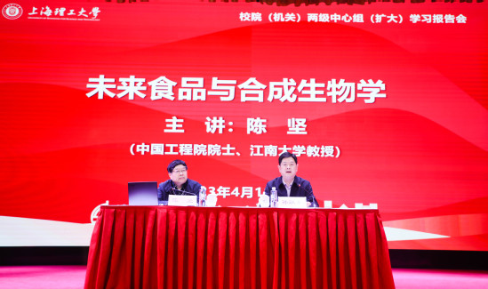 4月11日下午,黨委中心組舉行擴(kuò)大學(xué)習(xí)會,邀請中國工程院院士、江南大學(xué)教授、博士生導(dǎo)師陳堅作《未來食品與合成生物學(xué)》專題輔導(dǎo)報告,校黨委副書記孫躍東主持學(xué)習(xí)會。