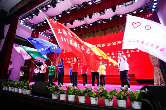 青年志愿者激情昂揚(yáng)的創(chuàng)全沖刺宣誓