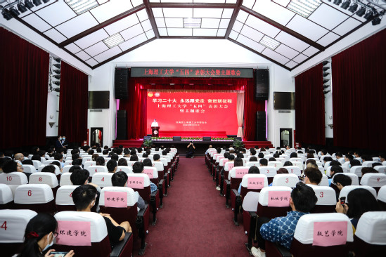 盛春代表學(xué)校黨政向獲得表彰的集體和個(gè)人表示熱烈的祝賀,向辛勤工作的共青團(tuán)干部和青年工作者表示衷心的感謝,向全校團(tuán)員青年致以誠摯的問候和良好的祝愿。他指出,過去一年多來,在上海市委和團(tuán)市委的領(lǐng)導(dǎo)下,學(xué)校以習(xí)近平新時(shí)代中國特色社會(huì)主義思想為引領(lǐng),全面貫徹黨對(duì)群團(tuán)工作的新要求,圍繞學(xué)校黨政中心工作,緊扣立德樹人根本任務(wù),團(tuán)結(jié)帶領(lǐng)廣大團(tuán)員青年,在學(xué)校高水平大學(xué)建設(shè)的新征程中開拓創(chuàng)新、奮發(fā)有為。他寄語上理青年:不斷追求進(jìn)步,讓聽黨話、跟黨走的信仰成為自覺追求;涵養(yǎng)家國情懷,讓矢志奮斗、追夢(mèng)前行的青春成為時(shí)代旋律;砥礪初心使命,讓敢為人先、勇于擔(dān)當(dāng)?shù)膶?shí)干成為行動(dòng)指南。