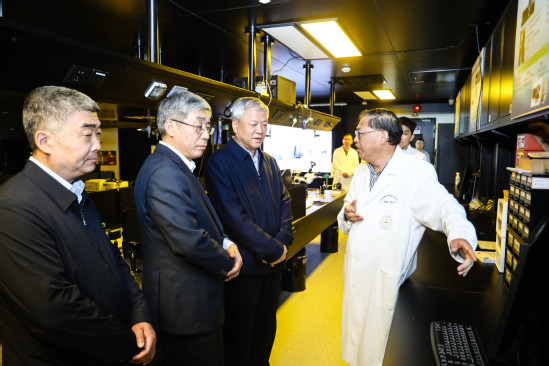 李仰哲一行實地調(diào)研參觀了上海高端醫(yī)療裝備創(chuàng)新中心、納米光子學實驗室、光子芯片研究院及實驗室,聽取了學校黨委關于堅持推進全面從嚴治黨、引領保障學校事業(yè)高質(zhì)量發(fā)展的情況匯報。