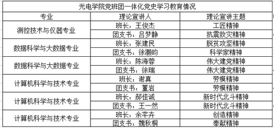 5月,光電學(xué)院黨員、入黨積極分子、發(fā)展對(duì)象在測(cè)控技術(shù)與儀器、數(shù)據(jù)科學(xué)與大數(shù)據(jù)、計(jì)算機(jī)科學(xué)與技術(shù)專(zhuān)業(yè),開(kāi)展 “弘揚(yáng)偉大建黨精神,傳承中國(guó)共產(chǎn)黨人精神譜系”理論宣講12次,服務(wù)學(xué)生200余人,宣講主題涵蓋偉大建黨精神、工匠精神、抗震救災(zāi)精神、脫貧攻堅(jiān)精神、科學(xué)家精神、勞模精神、新時(shí)代北斗精神、創(chuàng)造精神和奉獻(xiàn)精神等。青年大學(xué)生通過(guò)講好中國(guó)共產(chǎn)黨人革命故事、中國(guó)共產(chǎn)黨人精神譜系中各精神科學(xué)內(nèi)涵,堅(jiān)定理想信念,賡續(xù)紅色基因。