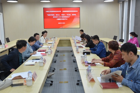 為深入開(kāi)展學(xué)習(xí)貫徹習(xí)近平新時(shí)代中國(guó)特色社會(huì)主義思想主題教育,5月23日下午,版藝學(xué)院與上海出版印刷高等專(zhuān)科學(xué)校以“舉旗幟、聚民心、育新人、興文化、展形象,激發(fā)師生文化創(chuàng)新創(chuàng)造活力”為主題,開(kāi)展主題教育聯(lián)組學(xué)習(xí)。馬克思主義學(xué)院郭根教授作專(zhuān)題講座,版藝學(xué)院黨委書(shū)記張華主持會(huì)議。