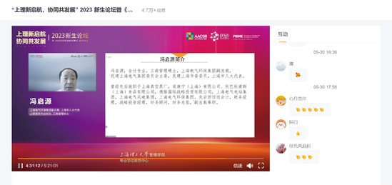 洞徹思想,逐光而行。統(tǒng)計數據顯示,本次活動線上參與累計4.5萬余人次。上理管院專業(yè)學位教育中心在這場為新生精心策劃舉辦的思想盛宴中,既有學術理論,也不乏實踐應用。來自不同研究領域的專家學者及上理優(yōu)秀校友代表,共聚2023新生論壇,對創(chuàng)業(yè)、投資及管理等方面進行解讀,帶領大家,“瞰”見未來。同學們紛紛表示,這是入學前收到學校最貼心的“禮物”。今后將更好把握人生方向,在學思踐悟中感悟青春責任。