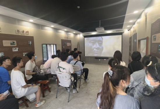 在展覽館二層和三層的“千秋巨筆·一代宗師”展覽中,講解員介紹陳望道的生平、學(xué)術(shù)及藏書,參觀期間同學(xué)們真切感受陳望道先生的崇高精神,深入了解黨的理論基礎(chǔ)和歷史淵源,加深了對真理和初心的理解與把握,深刻感受到早期共產(chǎn)黨人奮斗歷程之艱辛。講解過程中,每個(gè)人都全神貫注,被老一輩的革命故事所吸引,敬畏他們的革命精神、奮斗精神。在車庫影院,同學(xué)們觀看了《大師陳望道》和《信仰之源》紀(jì)錄片。