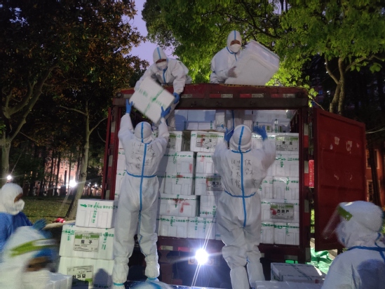 疫情期間文賢帶領(lǐng)志愿者小分隊(duì)卸載搬運(yùn)蔬菜