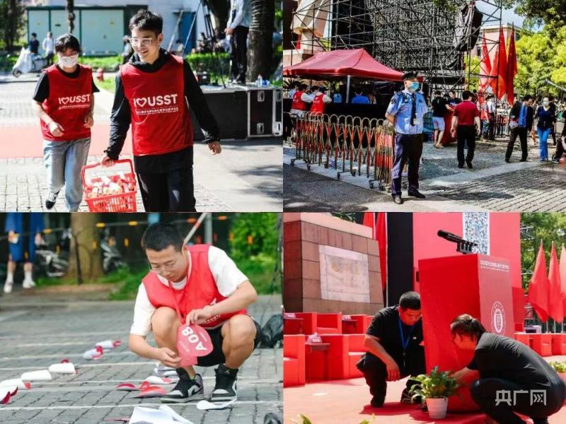 后勤部門連夜部署,并于6月11日清晨5時(shí)45分向所屬及協(xié)作單位員工發(fā)出緊急清理會場的動員令,5分鐘后就有第一批人員抵達(dá)現(xiàn)場。約1個小時(shí)后,在來自北區(qū)和南區(qū)物業(yè)、校園綠化、應(yīng)急搶修、垃圾分類、防汛防臺等單位近30人的奮戰(zhàn)以及現(xiàn)場工作人員的協(xié)作下,典禮現(xiàn)場近3000把座位清理完畢,保障了典禮的順利進(jìn)行。