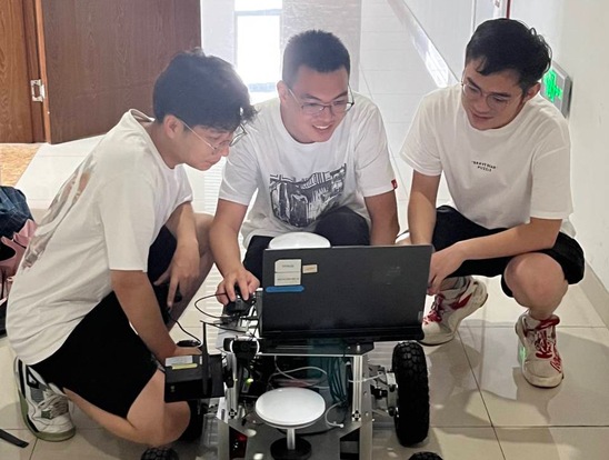 采摘機器人團隊成員進行小車測試