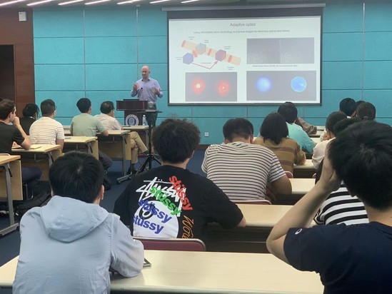 會后,Martin Booth教授做客光子芯片研究院的“光子縱橫論壇”,并做了題為“用于高分辨顯微術(shù)和光子工程的自適應(yīng)光學(xué)”的報(bào)告。報(bào)告中,Martin Booth教授介紹了如何使用動態(tài)光學(xué)元件(例如可變形鏡和空間光調(diào)制器)來提高激光微制造和光學(xué)顯微鏡能力,展示自適應(yīng)像差校正和動態(tài)并行化如何提高精度和可靠性,以及如何將激光書寫技術(shù)應(yīng)用于量子光學(xué)、輻射傳感、鉆石寶石的安全標(biāo)記等。此次報(bào)告吸引了來自南京大學(xué)、澳門大學(xué)等多所學(xué)校學(xué)生線上線下全程參與。