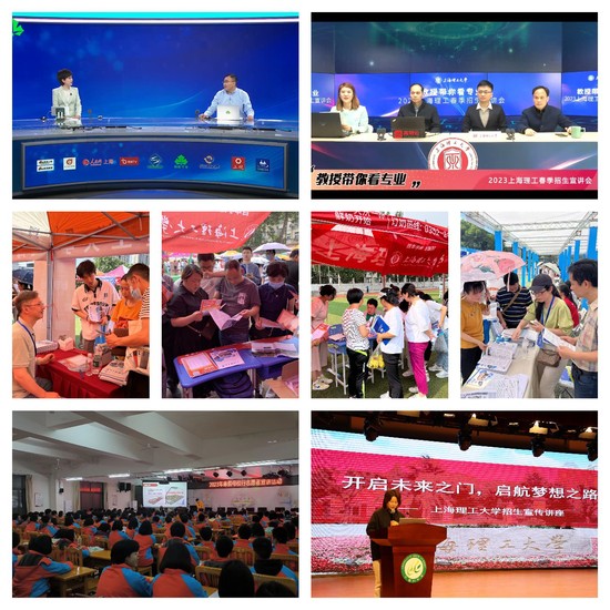 近年來(lái),學(xué)校不斷創(chuàng)新招生宣傳模式,優(yōu)化招生宣傳方案,全方位、立體式開展招生宣傳工作,切實(shí)提升招生宣傳工作成效,助力生源質(zhì)量穩(wěn)定與提升。線上線下雙管齊下,積極組織各學(xué)院奔赴全國(guó)各省市以及走進(jìn)本市多所市重點(diǎn)區(qū)重點(diǎn)高中進(jìn)行招生宣傳;先后開展多場(chǎng)“教授帶你看專業(yè)”專業(yè)介紹直播及分省直播宣傳。媒介渠道豐富多樣,在全國(guó)各省市招生考試類報(bào)刊、各類招考網(wǎng)站等媒體以及微信公眾號(hào)、視頻號(hào)、B站、中學(xué)電子屏等平臺(tái)及時(shí)發(fā)布各類招生信息。咨詢溝通實(shí)時(shí)暢通,通過學(xué)校招生咨詢電話、分省咨詢QQ群、陽(yáng)光高考平臺(tái)、高招e答、東方網(wǎng)等渠道與考生實(shí)時(shí)互動(dòng)交流,方便考生及時(shí)了解我校、報(bào)考我校。上理師生共同發(fā)力,持續(xù)推進(jìn)優(yōu)質(zhì)生源基地建設(shè),并通過“寒假學(xué)子母校行”活動(dòng)選拔優(yōu)秀學(xué)子回高中母校,展上理風(fēng)貌、顯學(xué)子風(fēng)采。錄取通知煥然一新,學(xué)校推出2023年新款錄取通知書,獲得了新生們的一致好評(píng)。