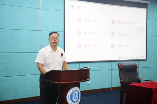 丁曉東校長(zhǎng)在講話中總結(jié)了我校今年暑期工作概況,暑期工作制期間,主題教育、基建、修繕、招生、就業(yè)等必要的計(jì)劃性工作有條不紊地推進(jìn),學(xué)生實(shí)習(xí)實(shí)踐、教師訪學(xué)研學(xué)、對(duì)外交流合作等積極踴躍,部分學(xué)院主辦的暑期學(xué)校有聲有色。同時(shí),也存在一些問(wèn)題,比如機(jī)關(guān)與學(xué)院、博士點(diǎn)學(xué)院與非博士點(diǎn)學(xué)院工作活躍度存在差別,機(jī)關(guān)未能起到引導(dǎo)、表率作用,學(xué)術(shù)、教學(xué)活動(dòng)在計(jì)劃性和統(tǒng)籌上有所欠缺,部分學(xué)生利用暑期自我提升的積極性不足。他強(qiáng)調(diào)要高度重視暑期工作,“暑期學(xué)術(shù)與工作活躍度”和“科研經(jīng)費(fèi)到款數(shù)”是反映和衡量學(xué)校未來(lái)發(fā)展?jié)摿Φ膬身?xiàng)重要預(yù)期性指標(biāo),暑期活躍度往往與大學(xué)辦學(xué)水平正相關(guān)。全校教職工要從思想上認(rèn)識(shí)暑期工作的重要性,抓緊利用好這兩個(gè)月左右的可自由支配的整段時(shí)間,教師抓緊進(jìn)修研討、學(xué)術(shù)交流,機(jī)關(guān)工作人員抓緊學(xué)習(xí)充電、調(diào)查研究。要增強(qiáng)暑期工作的規(guī)劃性與計(jì)劃性,機(jī)關(guān)部處做好暑期服務(wù)方案、工作開展計(jì)劃,為教師提供支持,確保各項(xiàng)工作不斷線,學(xué)院做好合作企事業(yè)單位走訪、學(xué)術(shù)交流組織和研討、教育教學(xué)改革研討等計(jì)劃,繼續(xù)探索舉辦暑期學(xué)校、暑期課程等人才培養(yǎng)拓展性活動(dòng)并結(jié)合各項(xiàng)工作系統(tǒng)謀劃和開展。